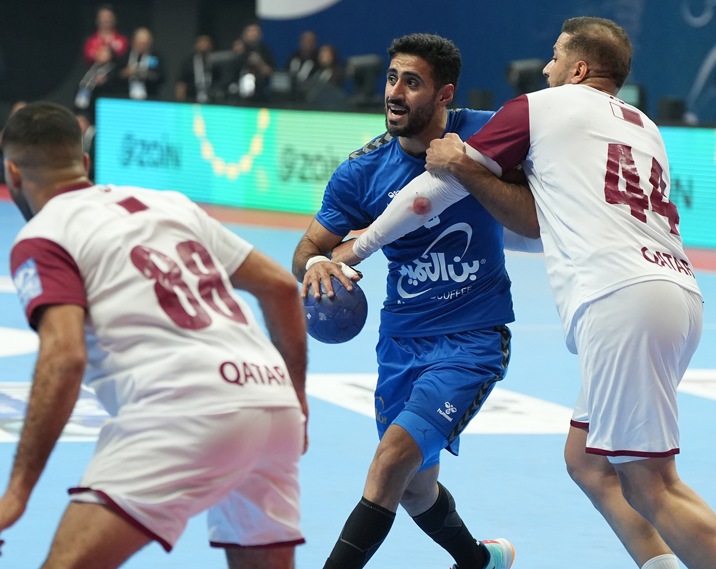وفي شوط المباراة الثاني تمكن منتخب قطر من تقليص الفارق مع منتخب الكويت الذي واصل الظهور بروح عالية لينتهي الوقت الأصلي (22 - 22) لتذهب المباراة للأشواط الإضافية التي انتهت (27 - 26) لمصلحة منتخب قطر ليواجه نظيره البحريني في النهائي بعد غد الخميس.