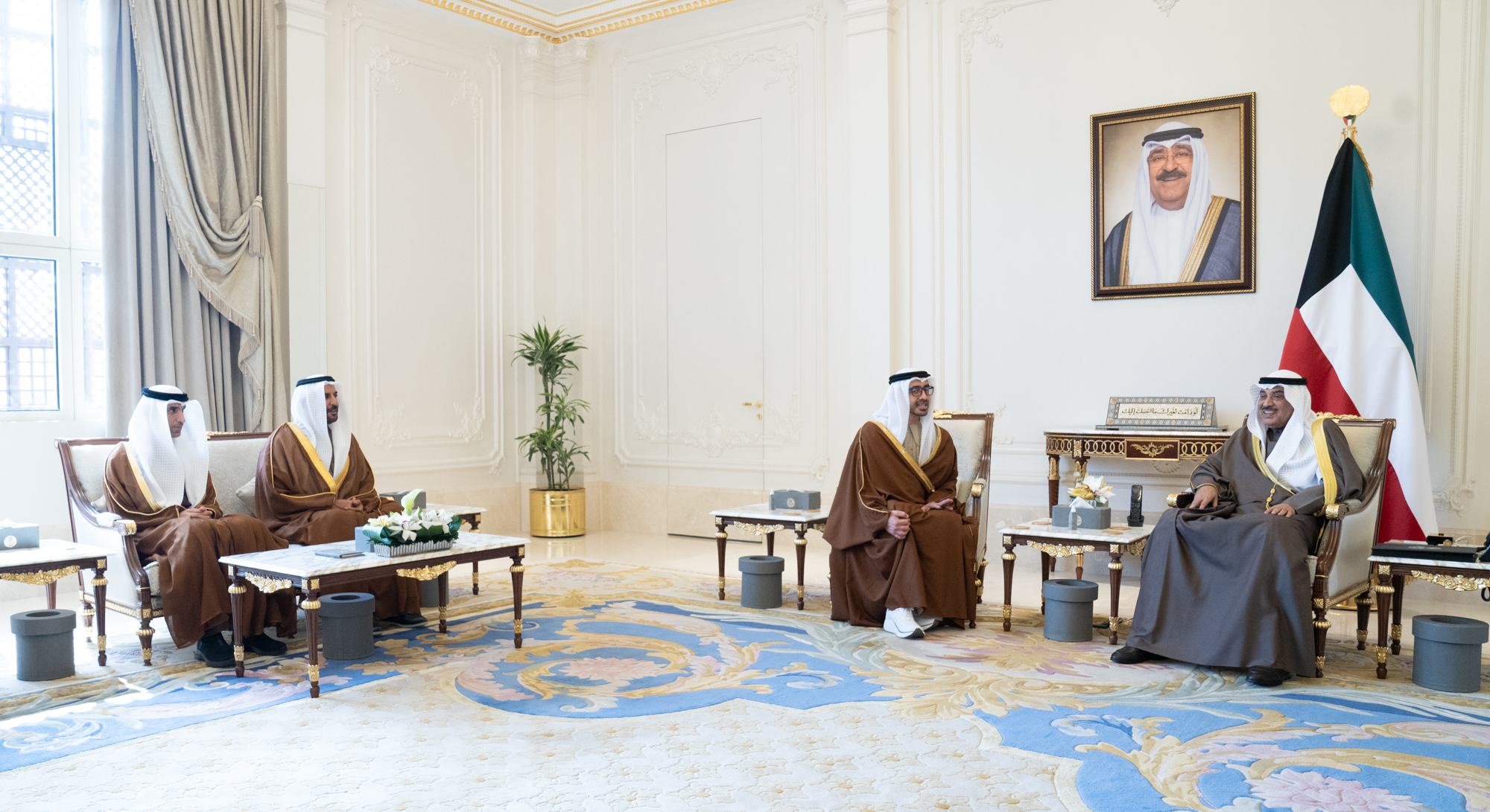 الكويت - 28 - 1 (كونا) -- استقبل سمو ولي العهد الشيخ صباح خالد الحمد الصباح حفظه الله بقصر بيان صباح اليوم سمو الشيخ عبدالله بن زايد آل نهيان نائب رئيس مجلس الوزراء وزير الخارجية في دولة الإمارات العربية المتحدة الشقيقة والوفد المرافق وذلك بمناسبة زيارته للبلاد.حيث نقل لسمو ولي العهد حفظه الله تحيات وتقدير أخيه صاحب السمو الشيخ محمد بن زايد آل نهيان رئيس دولة الإمارات العربية المتحدة الشقيقة وأخيه صاحب السمو الشيخ محمد بن راشد آل مكتوم نائب رئيس الدولة ورئيس مجلس الوزراء حاكم دبي وتمنياتهما لسموه بموفور الصحة وتمام العافية.هذا وقد حمله سمو ولي العهد الشيخ صباح خالد الحمد الصباح حفظه الله تحياته لأخيه صاحب السمو الشيخ محمد بن زايد آل نهيان رئيس دولة الإمارات العربية المتحدة الشقيقة وأخيه صاحب السمو الشيخ محمد بن راشد آل مكتوم نائب رئيس الدولة ورئيس مجلس الوزراء حاكم دبي وتمنياته لهما بوافر الصحة والعافية.حضر اللقاء معالي رئيس ديوان سمو ولي العهد الشيخ ثامر جابر الأحمد الصباح ومعالي وزير الخارجية عبدالله علي اليحيا وكبار المسؤولين. (النهاية)ا ف ح