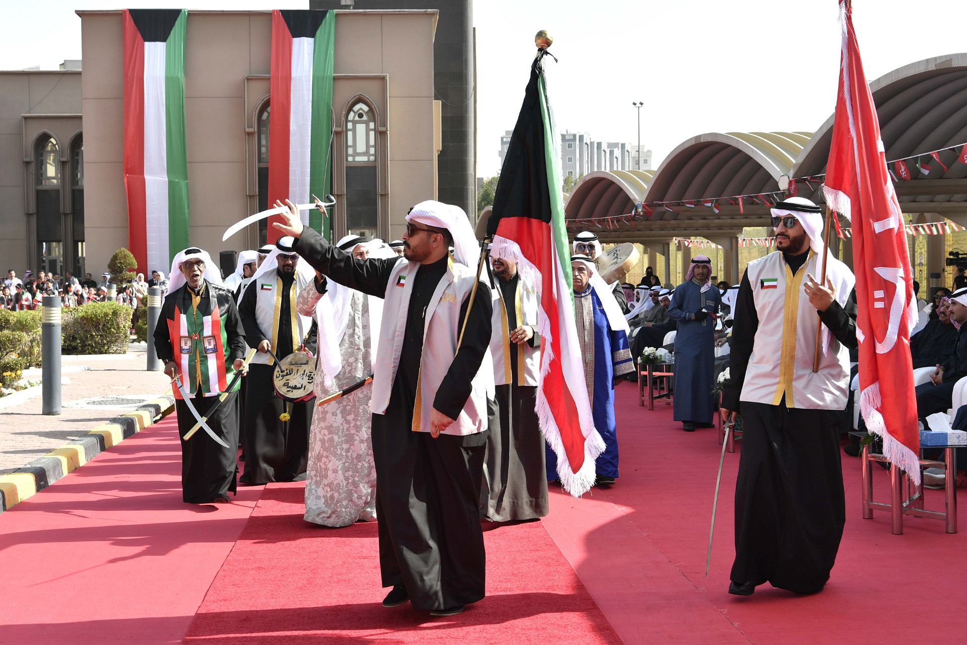 وبدأ الاحتفال برفع العلم وعزف السلام الوطني حيث قام محافظ الفروانية برفع العلم كما شهد الاحتفال حضور عدد من القيادات الأمنية ومسؤولي الجهات الحكومية وأهالي ووجهاء المحافظة بالإضافة إلى الطلاب والطالبات الذين أدوا فقرات وطنية تعبر عن هذه المناسبات الوطنية الغالية. (النهاية)