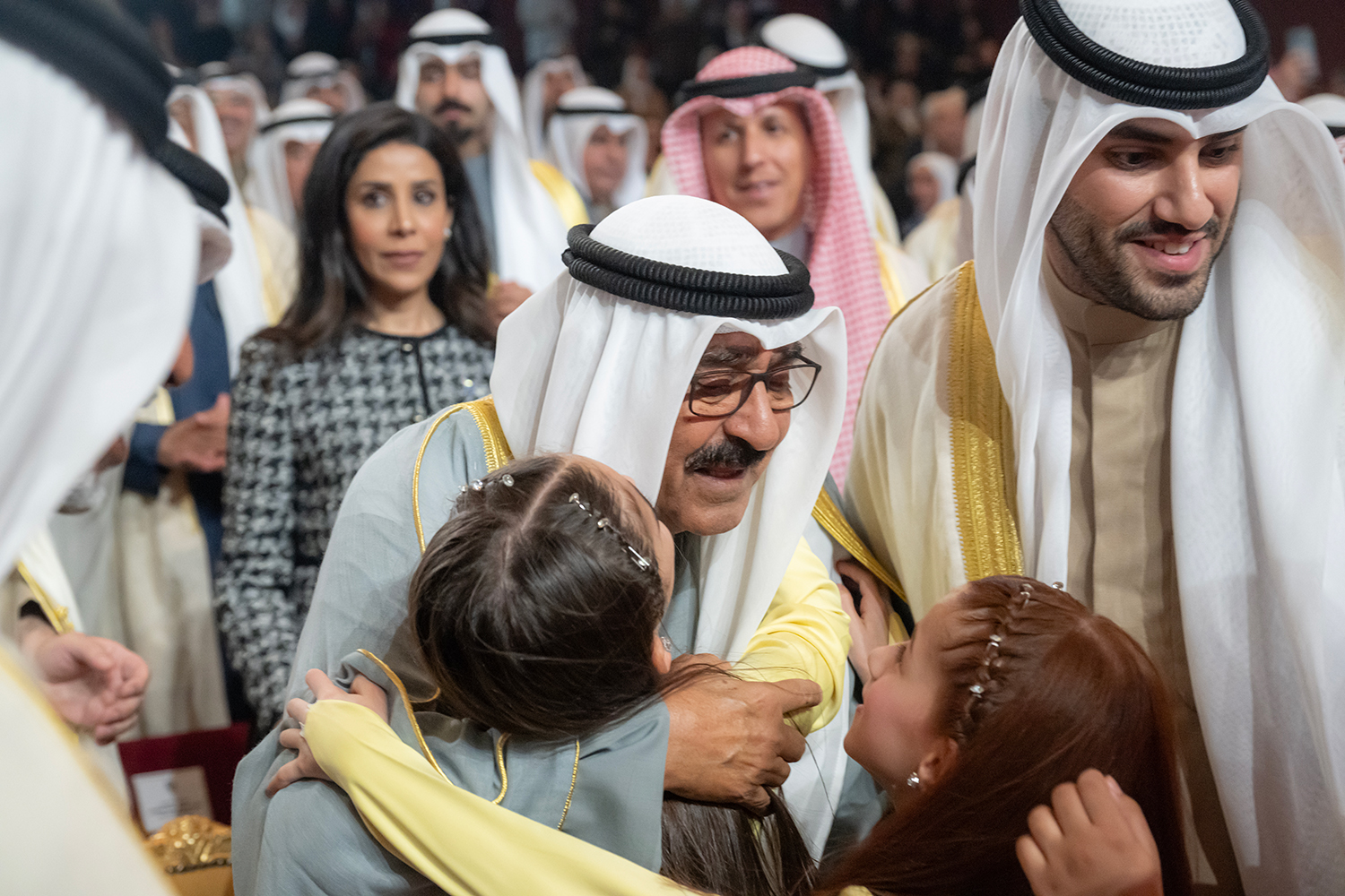 ووصل سموه رعاه الله إلى مكان الحفل حيث استقبل بكل حفاوة وترحيب من قبل معالي وزير الدولة لشؤون الاتصالات وتكنولوجيا المعلومات وزير الإعلام والثقافة بالوكالة عمر سعود العمر ومعالي وزير التربية سيد جلال سيد عبدالمحسن الطبطبائي ورئيس مركز العمل التطوعي عضو اللجنة الدائمة للإحتفال بالأعياد والمناسبات الوطنية الشيخة أمثال الأحمد الجابر الصباح.