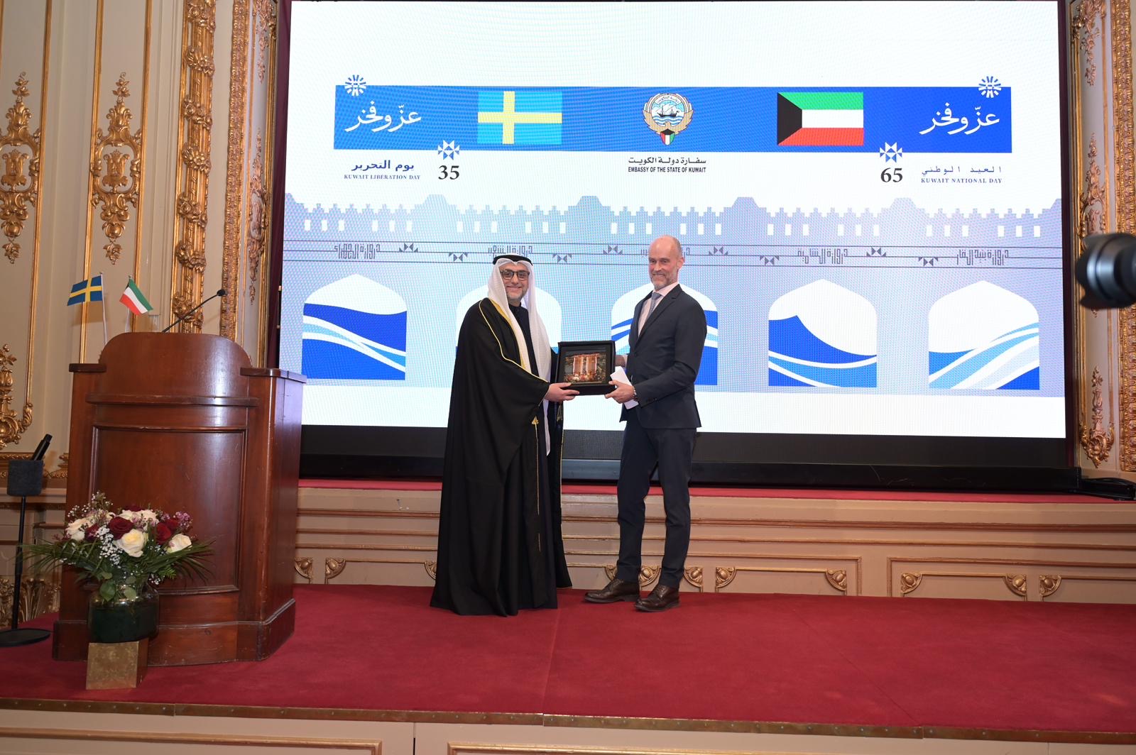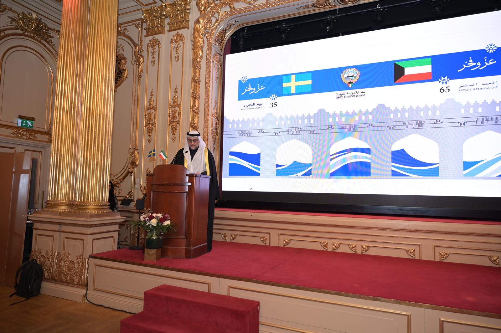 وفي ستوكهولم أقامت سفارة دولة الكويت لدى السويد حفل استقبال بهذه المناسبة الوطنية بحضور عدد من المسؤولين في الحكومة السويدية وأعضاء البرلمان السويدي ورؤساء البعثات وأعضاء السلك الدبلوماسي ورجال الأعمال وممثلي المجتمع المدني.