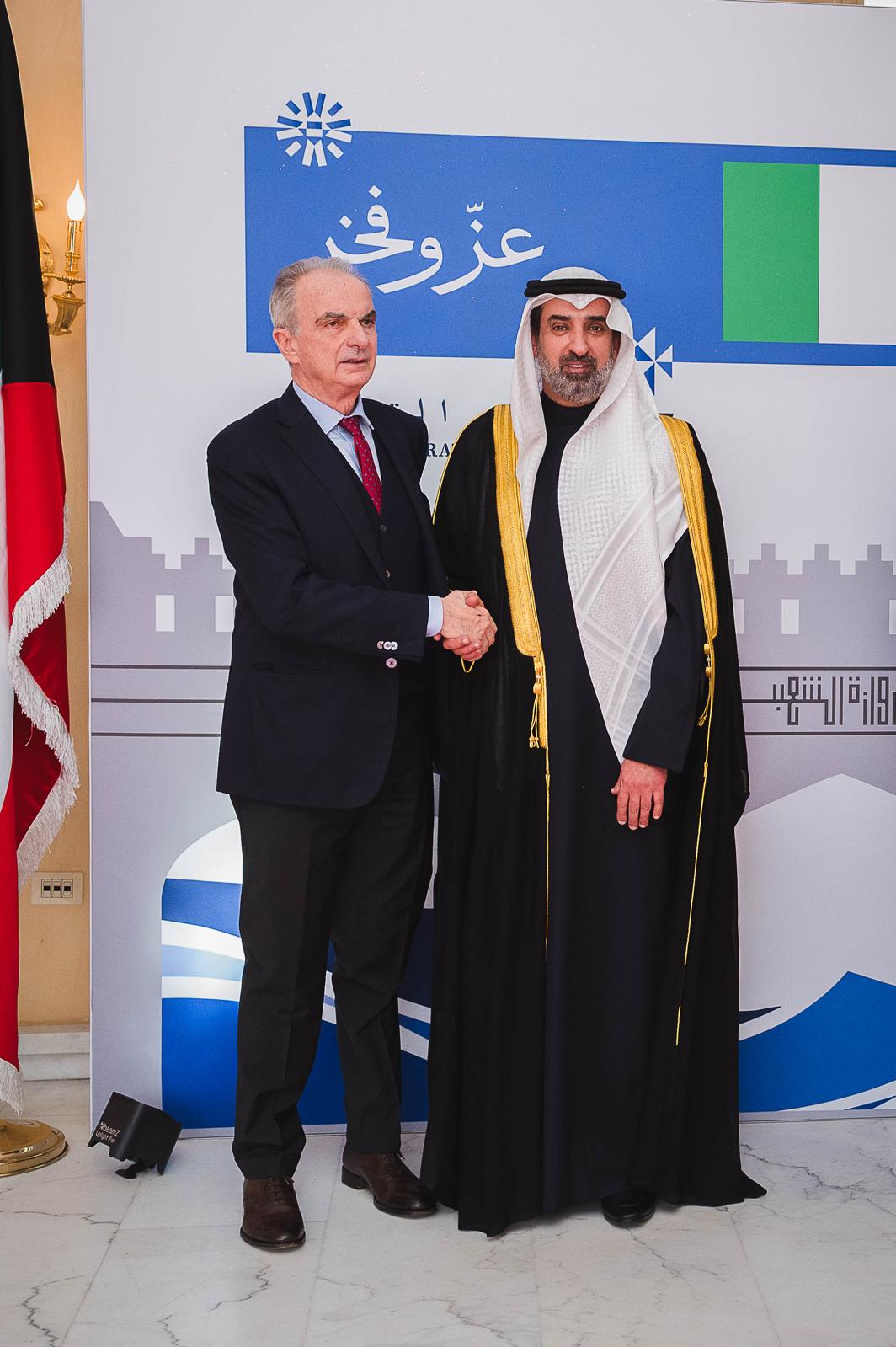وأكد السفير القحطاني في كلمة ألقاها خلال الحفل عمق العلاقات التاريخية التي تربط دولة الكويت والجمهورية الإيطالية والتي أرست دعائمها قيادتا البلدين منذ عقود مشيرا إلى أن تلك العلاقات شهدت خلال السنوات الأخيرة زخما متناميا على المستويات السياسية والدفاعية والاقتصادية والتجارية والثقافية بما يعكس الإرادة المشتركة للارتقاء بها إلى آفاق أرحب.