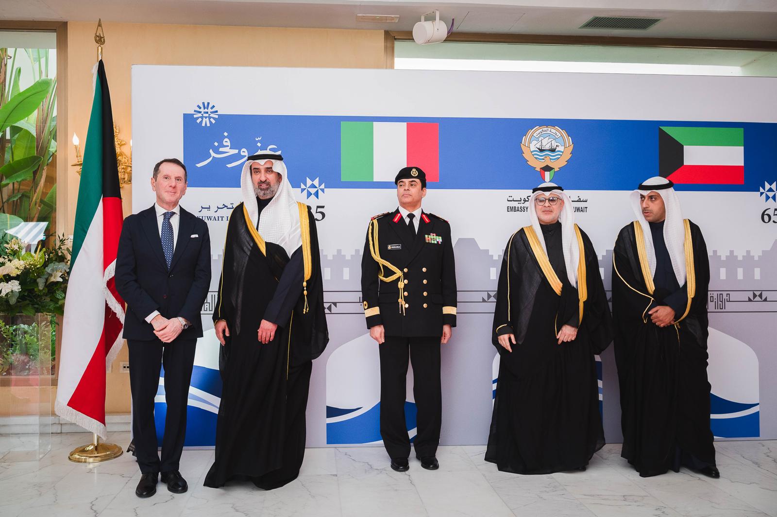 بدورها أقامت سفارة دولة الكويت لدى الجمهورية الإيطالية حفل استقبال بمناسبة الذكرى الـ65 للعيد الوطني والذكرى الـ35 ليوم التحرير بحضور عدد من كبار المسؤولين الإيطاليين وأعضاء السلك الدبلوماسي المعتمدين إلى جانب شخصيات برلمانية وأكاديمية وممثلي المجتمع المدني ورجال الأعمال.