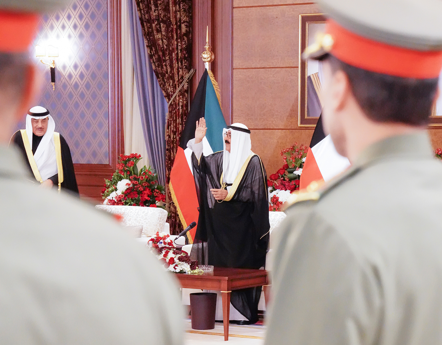 الكويت - 23 - 2 (كونا) -- قام حضرة صاحب السمو أمير البلاد الشيخ مشعل الأحمد الجابر الصباح حفظه الله ورعاه القائد الأعلى للقوات المسلحة مساء اليوم وفي معيته سمو ولي العهد الشيخ صباح خالد الحمد الصباح حفظه الله وسمو الشيخ أحمد عبدالله الأحمد الصباح رئيس مجلس الوزراء بزيارة إلى الرئاسة العامة للحرس الوطني.