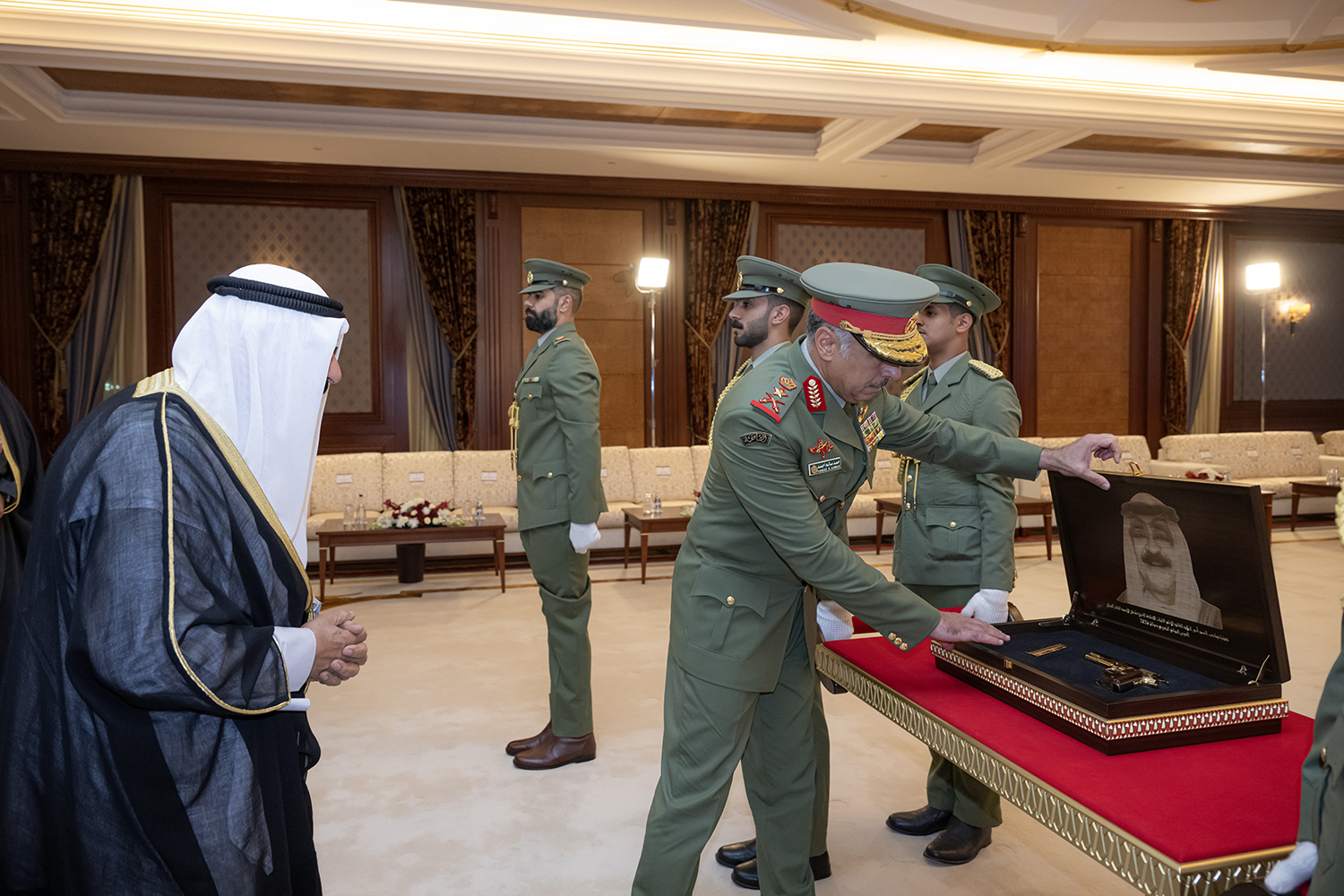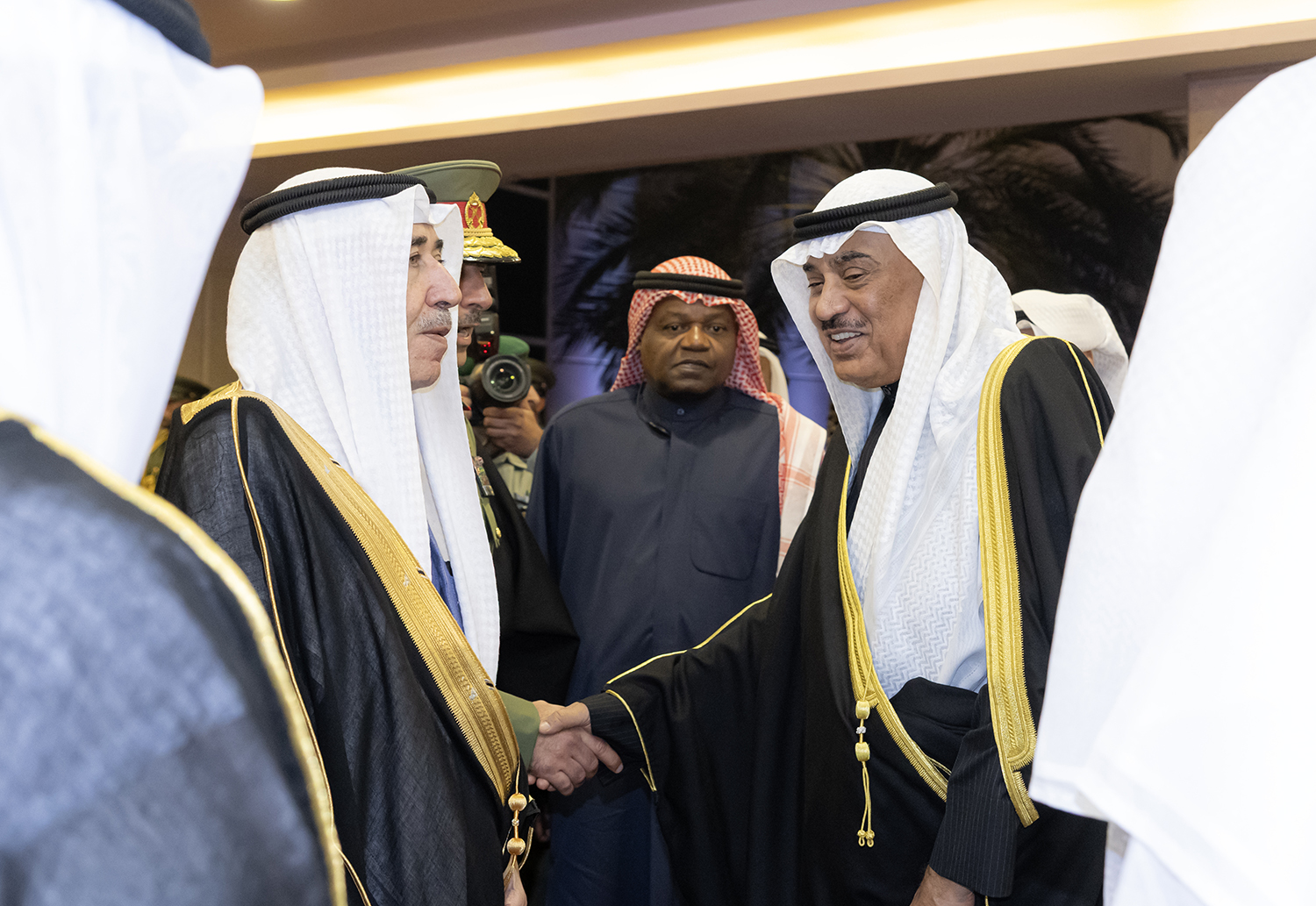 حيث كان في استقبال سموه رعاه الله معالي رئيس الحرس الوطني الشيخ مبارك حمود الجابر الصباح ومعالي نائب رئيس الحرس الوطني الشيخ فيصل نواف الأحمد الجابر الصباح ووكيل الحرس الوطني الفريق الركن حمد سالم البرجس.