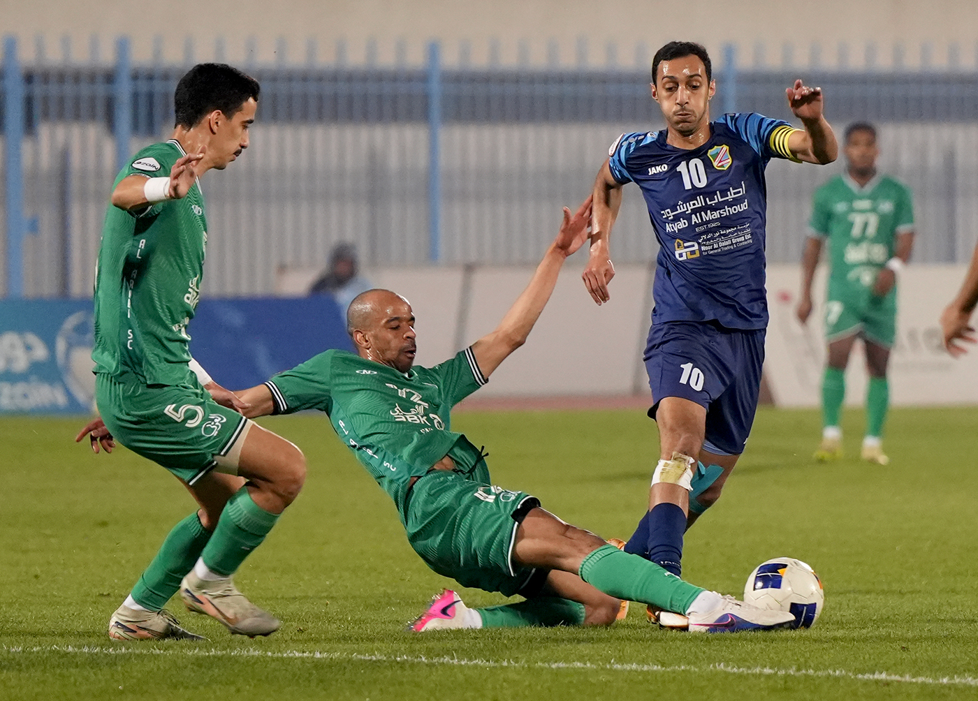 لاعب السالمية ينطلق بالكرة وسط مضايقة من لاعب العربي