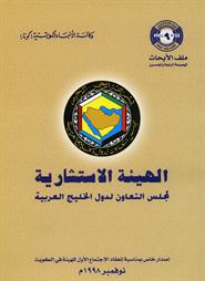 - الطبعة الأولى نوفمبر ( تشرين الثاني ) 1998 - إصدار إدارة المعلومات والأبحاث - يقع الإصدار في 80 صفحة من الحجم الصغير - يحتوي الكتيب على مقدمة وخمسة فصول - الفصل الأول يتناول الخلفية التاريخية لتأسيس الهيئة - الفصل الثاني يرصد تطور فكرة إنشاء الهيئة من المقترح إلى التنفيذ الفعلي - الفصل الثالث يحتوي على اللائحة الداخلية للهيئة وأسماء ممثلي بلدان دول مجلس التعاون - الفصل الرابع يقدم السيرة الذاتية لأعضاء الهيئة الاستشارية - الفصل الخامس والأخير استطلاع أراء عدد من الأكاديميين حول الهيئة ودورها المستقبلي