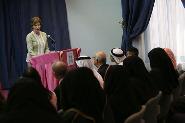 وكان في استقبال لورا بوش والوفد المرافق لها رئيس جمعية الهلال الأحمر السعودية الرئيس الفخري للجمعية السعودية للسرطان الأمير فيصل بن عبد الله بن عبد العزيز وقائد قاعدة الرياض الجوية اللواء طيار ركن محمد المعطاني والسفير الأمريكي لدى السعودية فورد ام فريكر.