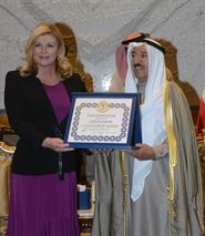 His Highness the Amir Sheikh Sabah Al-Ahmad Al-Jaber Al-Sabah presented visiting Croatian President Kolinda Grabar-Kitarovic on Sunday with the "Order of Mubarak Al-Kabeer", in recognition of the European nation's support of Kuwait.