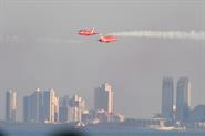 A large number of people gathered in the seaside along the Arabian Gulf Road to watch the air show as the planes, including Hawk jets, streaked across the skies.