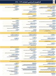 وقالت وزارة التربية في بيان صحفي إنه وفقا للتقويم يبدأ دوام متعلمي الصف الأول في المرحلة الابتدائية 16 سبتمبر المقبل على أن يبدأ دوام باقي المتعلمين في المراحل الابتدائية والمتوسطة والثانوية 17 سبتمبر المقبل فيما يبدأ دوام رياض الأطفال في 18 سبتمبر.