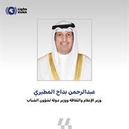 الكويت - 27 - 12 (كونا) -- هنأ وزير الإعلام والثقافة ووزير الدولة لشؤون الشباب عبد الرحمن المطيري منتخب الكويت لكرة القدم والجهازين الفني والإداري والاتحاد الكويتي والجماهير الوفية على التأهل المستحق للمنتخب اليوم الجمعة للدور نصف النهائي من بطولة كأس الخليج العربي (خليجي زين 26) التي تستضيفها دولة الكويت وتستمر حتى 3 يناير المقبل.