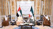 حيث نقل لسموه رعاه الله تحيات وتقدير أخيه صاحب السمو الشيخ محمد بن زايد آل نهيان رئيس دولة الإمارات العربية المتحدة الشقيقة وأخيه صاحب السمو الشيخ محمد بن راشد آل مكتوم نائب رئيس الدولة رئيس مجلس الوزراء حاكم دبي وتمنياتهما لسموه حفظه الله بموفور الصحة ودوام العافية ولشعب دولة الكويت المزيد من التقدم والنماء.