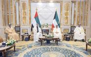 الكويت - 8 - 10 (كونا) -- استقبل حضرة صاحب السمو أمير البلاد الشيخ مشعل الأحمد الجابر الصباح حفظه الله ورعاه بقصر بيان ظهر اليوم أخيه صاحب السمو الشيخ محمد بن زايد آل نهيان رئيس دولة الإمارات العربية المتحدة الشقيقة والوفد المرافق لسموه بحضور سمو ولي العهد الشيخ صباح خالد الحمد الصباح حفظه الله وسمو الشيخ أحمد عبدالله الأحمد الصباح رئيس مجلس الوزراء وذلك بمناسبة زيارته الأخوية للبلاد.