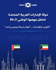 أبوظبي - 2 - 12 (كونا) -- تحت شعار (متحدين) تحيي دولة الإمارات العربية المتحدة اليوم الثلاثاء الذكرى ال54 ليومها الوطني الذي يصادف الثاني من ديسمبر من كل عام حاملا معه روحا متجددة من الوحدة والتمسك بالهوية الوطنية الأصيلة والامتداد الثري والمتجذر خليجيا وعربيا بتجربة رائدة ونموذج فريد في التنمية والحداثة ومواكبة تطورات العصر.