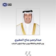 الكويت - 14 - 1 (كونا) -— قال وزير الإعلام والثقافة ووزير الدولة لشؤون الشباب عبدالرحمن المطيري إن يوم الكويت الرياضي يعد مناسبة رياضية وطنية مهمة تجسد رؤية القيادة السياسية الحكيمة حفظهم الله ورعاهم في تعزيز ممارستها وتأصيل ثقافتها بين أفراد المجتمع.