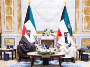 His Highness The Amir Sheikh Meshal Al-Ahmad Al-Jaber Al-Sabah receives His Highness The Crown Prince Sheikh Sabah Khaled Al-Hamad Al-Sabah
