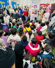 وأشارت إلى أن البدء بالأغنية يعتبر عامل تحفيز للأطفال للاستمتاع بالورشة مؤكدة أن الهدف الأسمى للقاء الأطفال "المتعة والفائدة لا حشو المعلومات في عقولهم".