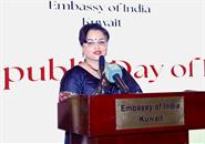 جاء ذلك في كلمة خلال حفل استقبال أقامته سفارتها بمناسبة الذكرى ال77 ليوم الجمهورية الهندية بحضور وزير الكهرباء والماء والطاقة المتجددة ووزير المالية ووزير الدولة للشؤون الاقتصادية والاستثمار بالوكالة الدكتور صبيح المخيزيم ومساعد وزير الخارجية لشؤون آسيا السفير سميح جوهر حيات ووكيل وزارة الدفاع الشيخ الدكتور عبدالله الصباح وعدد من كبار المسؤولين والدبلوماسيين.