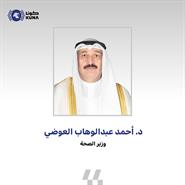 الكويت - 24 - 2 (كونا) -- رفع وزير الصحة الدكتور أحمد العوضي أسمى آيات التهاني والتبريكات إلى مقام حضرة صاحب السمو أمير البلاد الشيخ مشعل الأحمد الجابر الصباح حفظه الله ورعاه وإلى سمو ولي عهده الأمين الشيخ صباح خالد الحمد الصباح حفظه الله وإلى سمو الشيخ أحمد عبدالله الأحمد الصباح رئيس مجلس الوزراء حفظه الله بمناسبة العيد الوطني الـ65 ويوم التحرير الـ35.