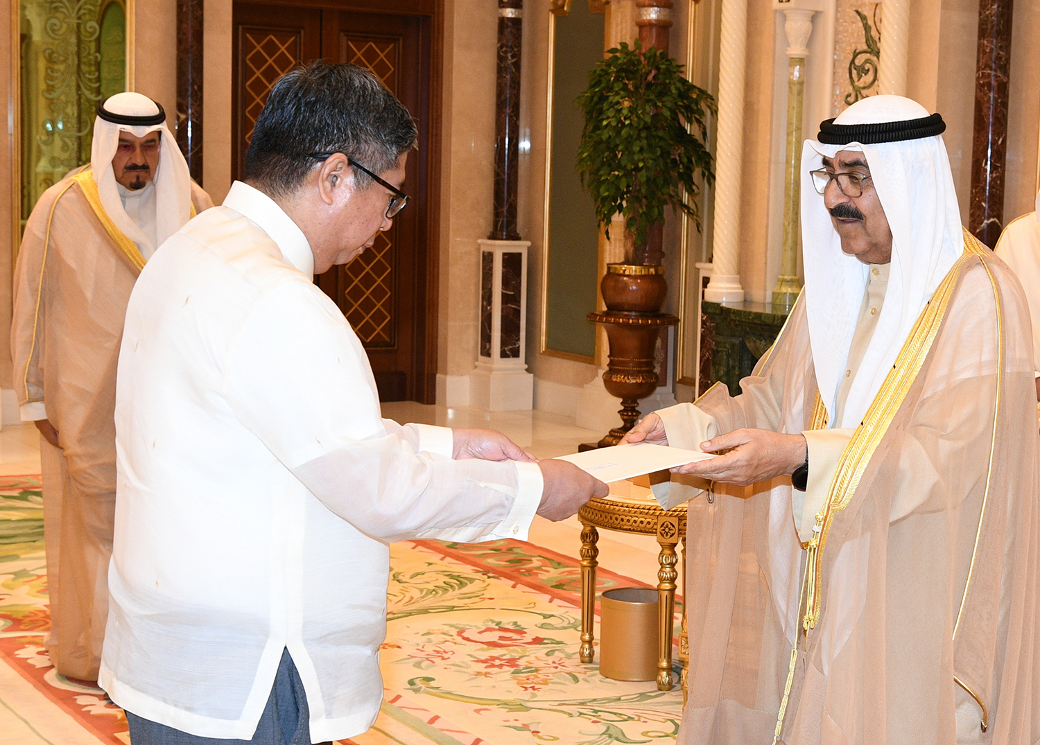 KUWAIT, May 30 (KUNA) - His Highness the Crown Prince Sheikh Mishal Al-Ahmad Al-Jaber Al-Sabah received Tuesday the credentials of the newly appointed Ambassador of Malaysia Alaeddin bin Mohammad Noor, Ambassador of the Philippines Jose Almodovar Cabrera III, Ambassador of Malta Dr. George Saeed Zammit.