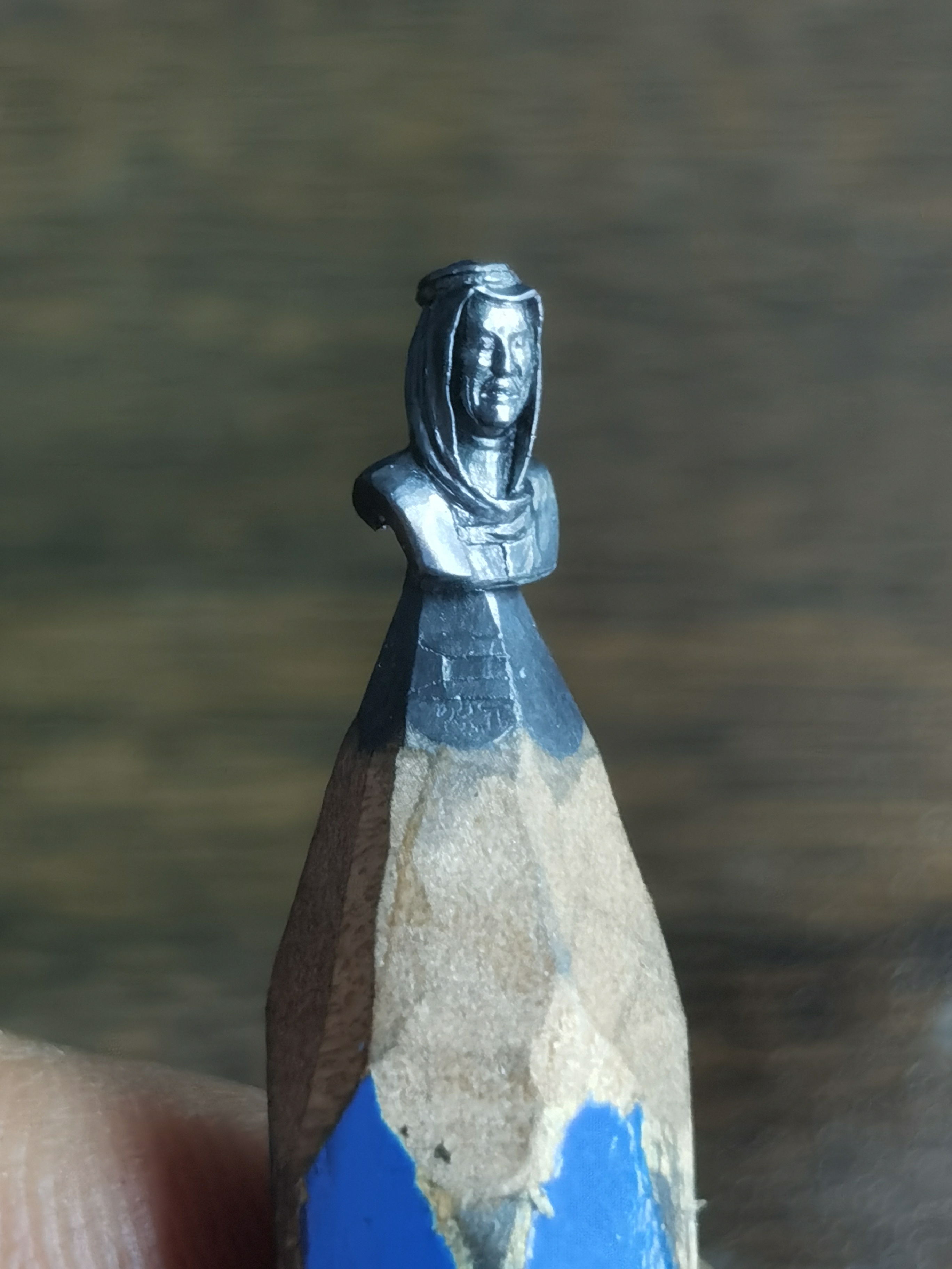 Despite fragile materials and small sizes of pencils used in sculpture, Bilal can carve artifacts, pharaonic statues, leaders, prominent historical figures, Quranic verses and mosques, as well as models of cars and animals.