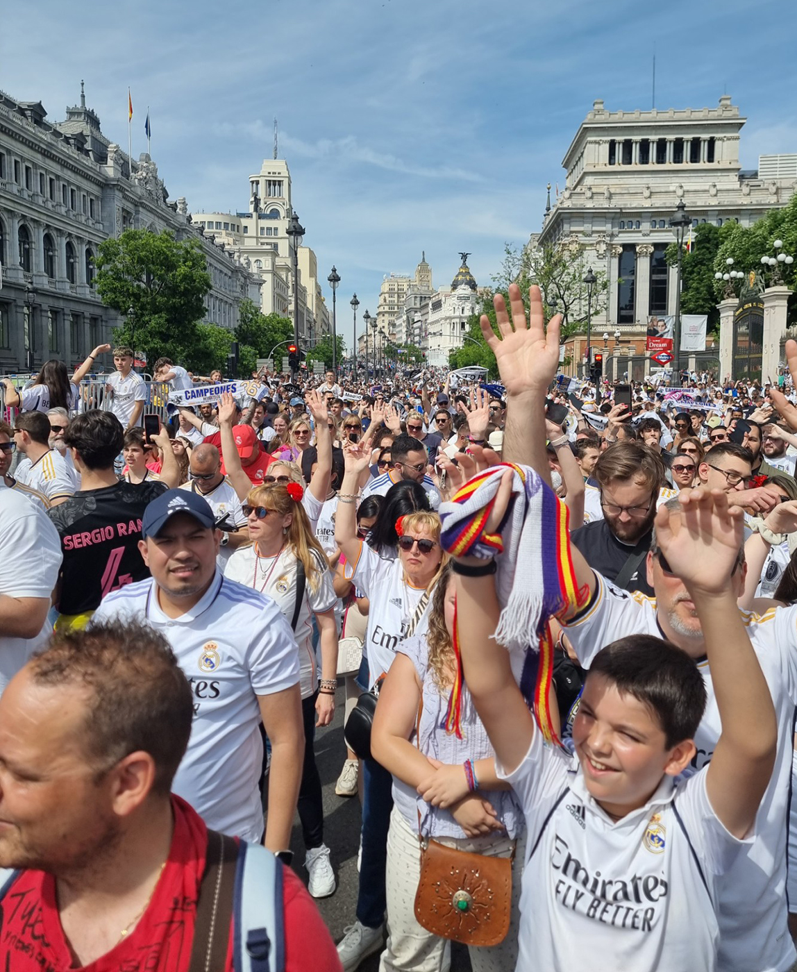 Thousands of fans have gathered all around the city as the team's bus paraded through the streets reaching their traditional spot at the Cibeles square to celebrate their historic 36th Spanish league title. (end)