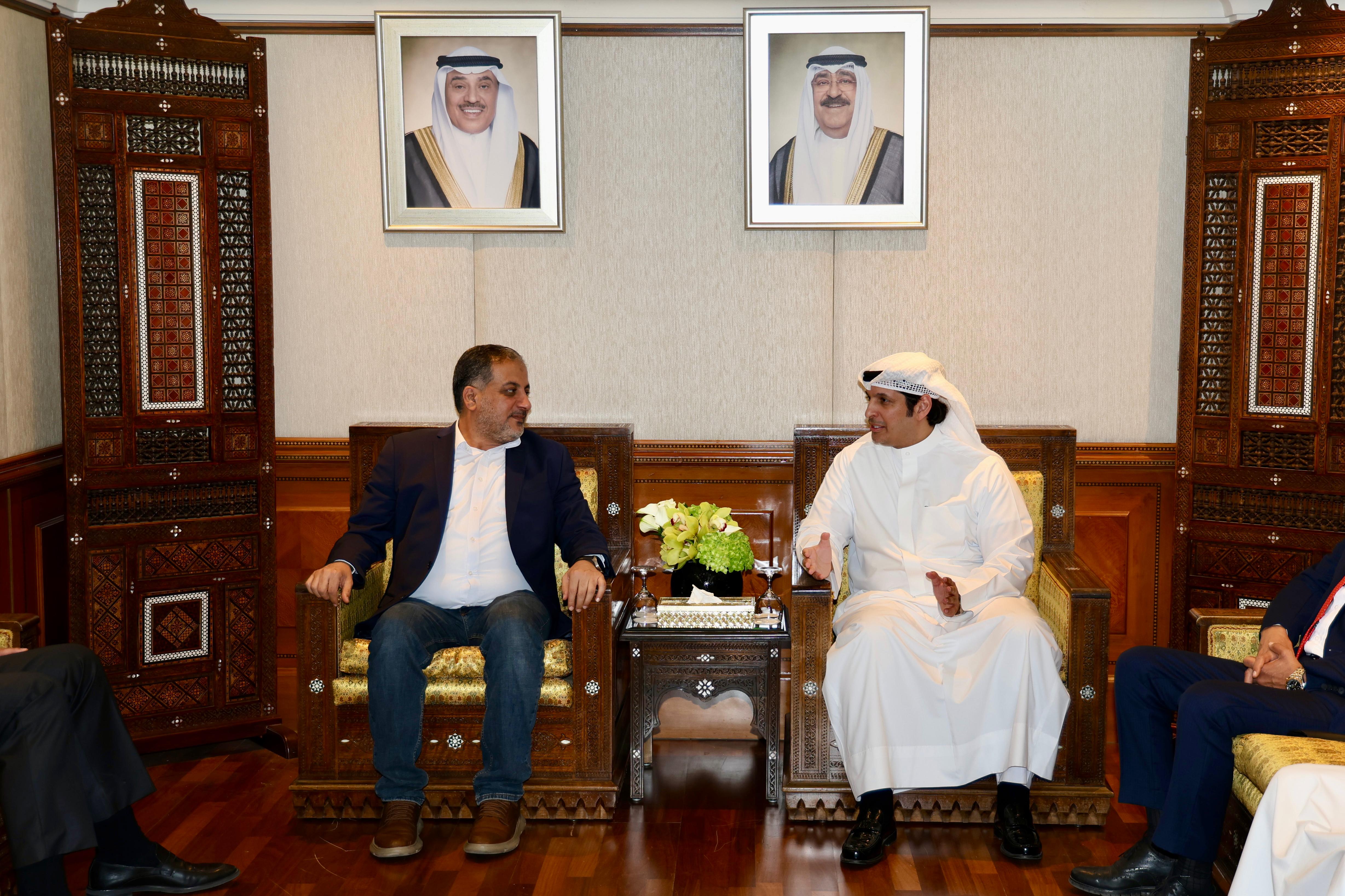 Kuwaiti Minister of State for Youth Affairs Abdulrahman Al-Mutairi receives Iraqi counterpart Ahmad Al-Mubarqa