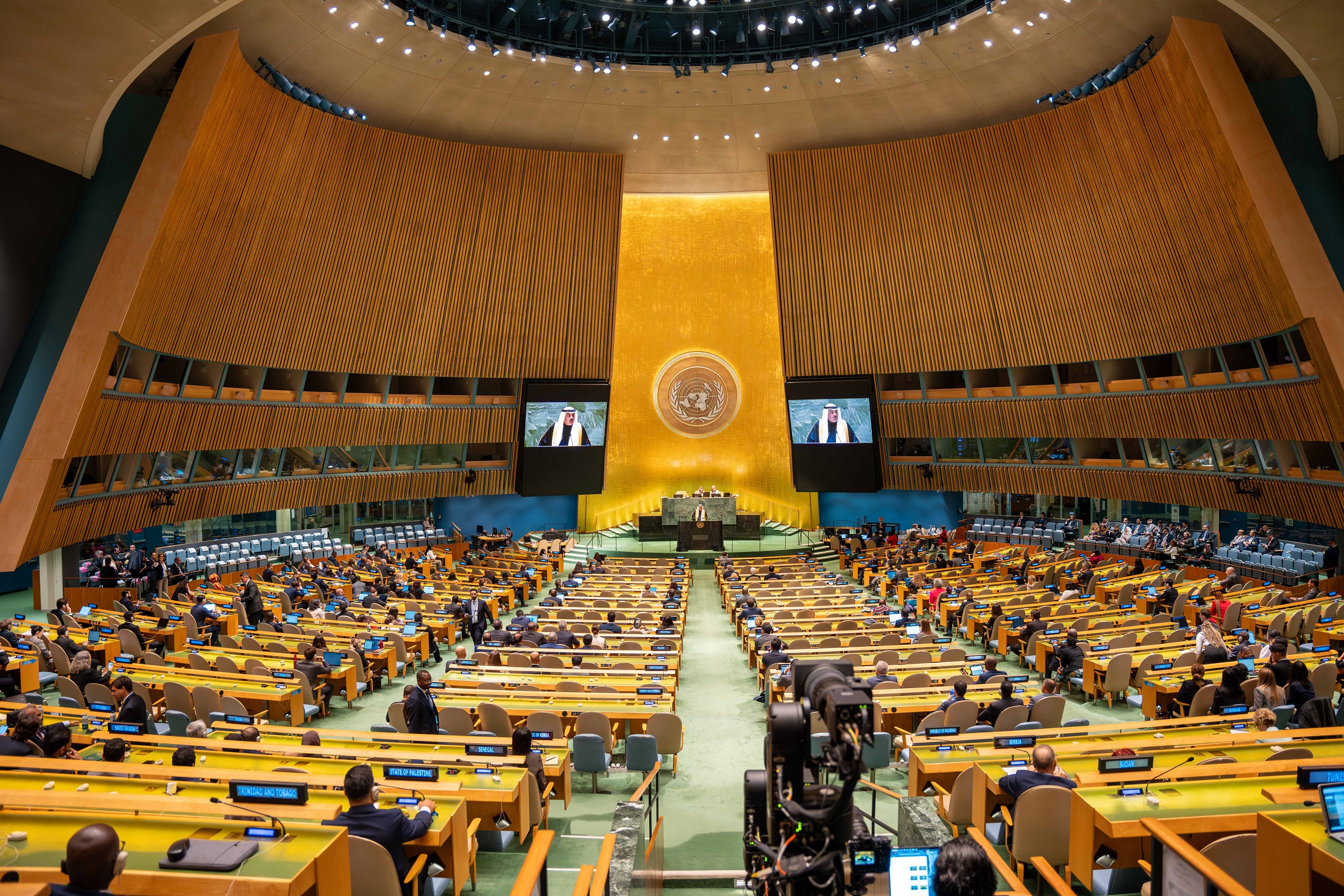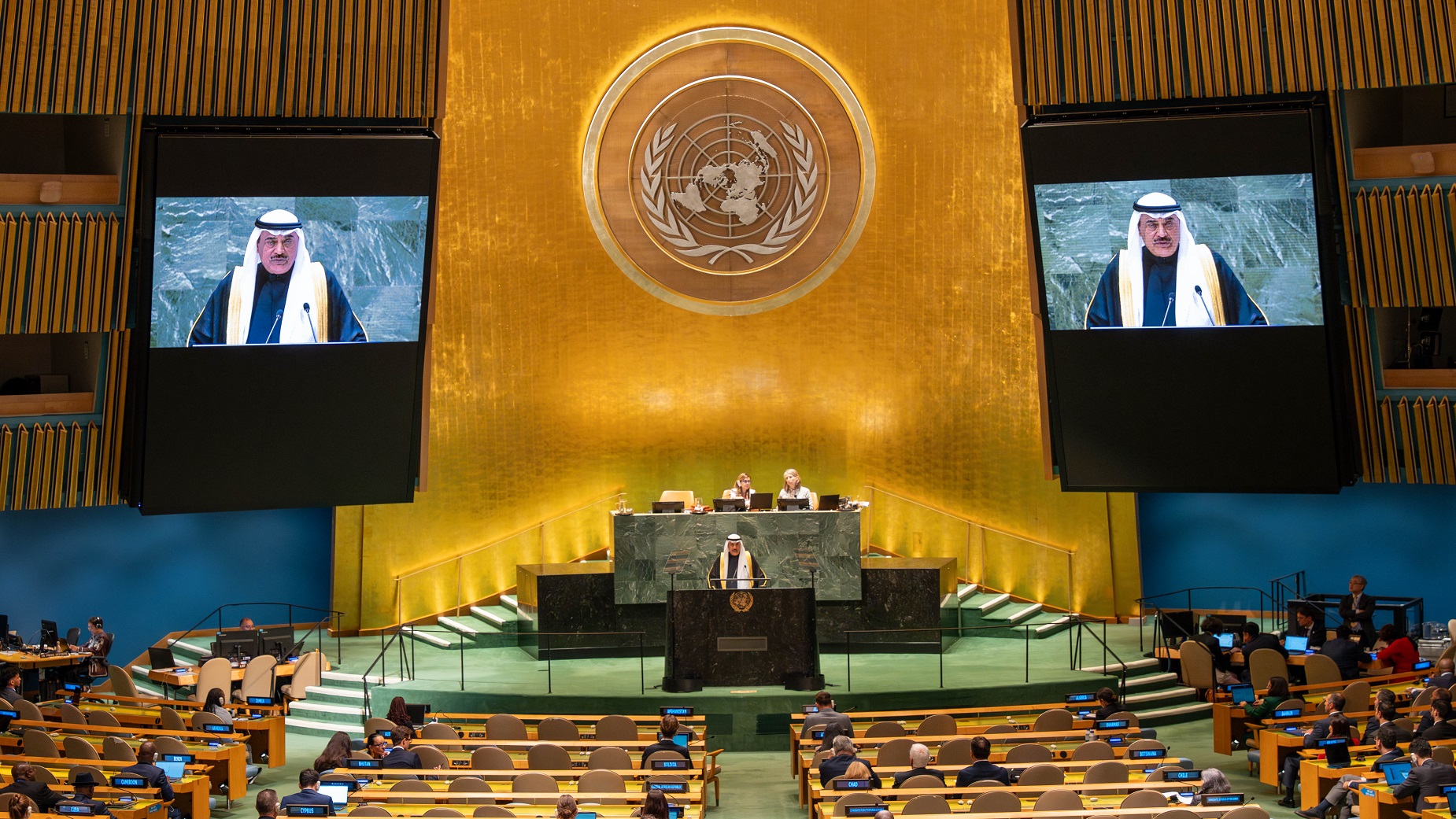 بداية يسرني أن أنقل لكم تحيات حضرة صاحب السمو أمير دولة الكويت الشيخ مشعل الأحمد الجابر الصباح (حفظه الله ورعاه) وتمنيات سموه بنجاح أعمال الدورة الـ(79) للجمعية العامة للأمم المتحدة واجتماعاتها.