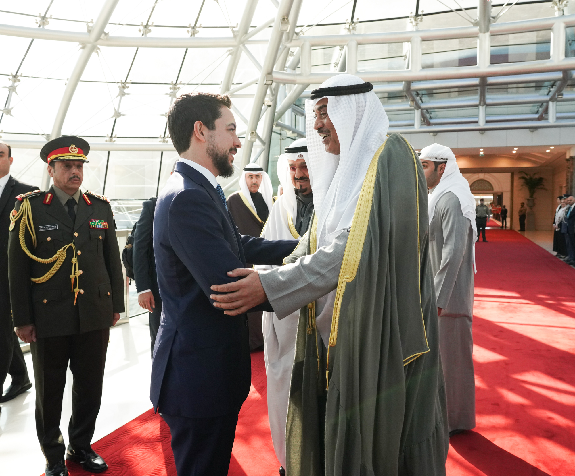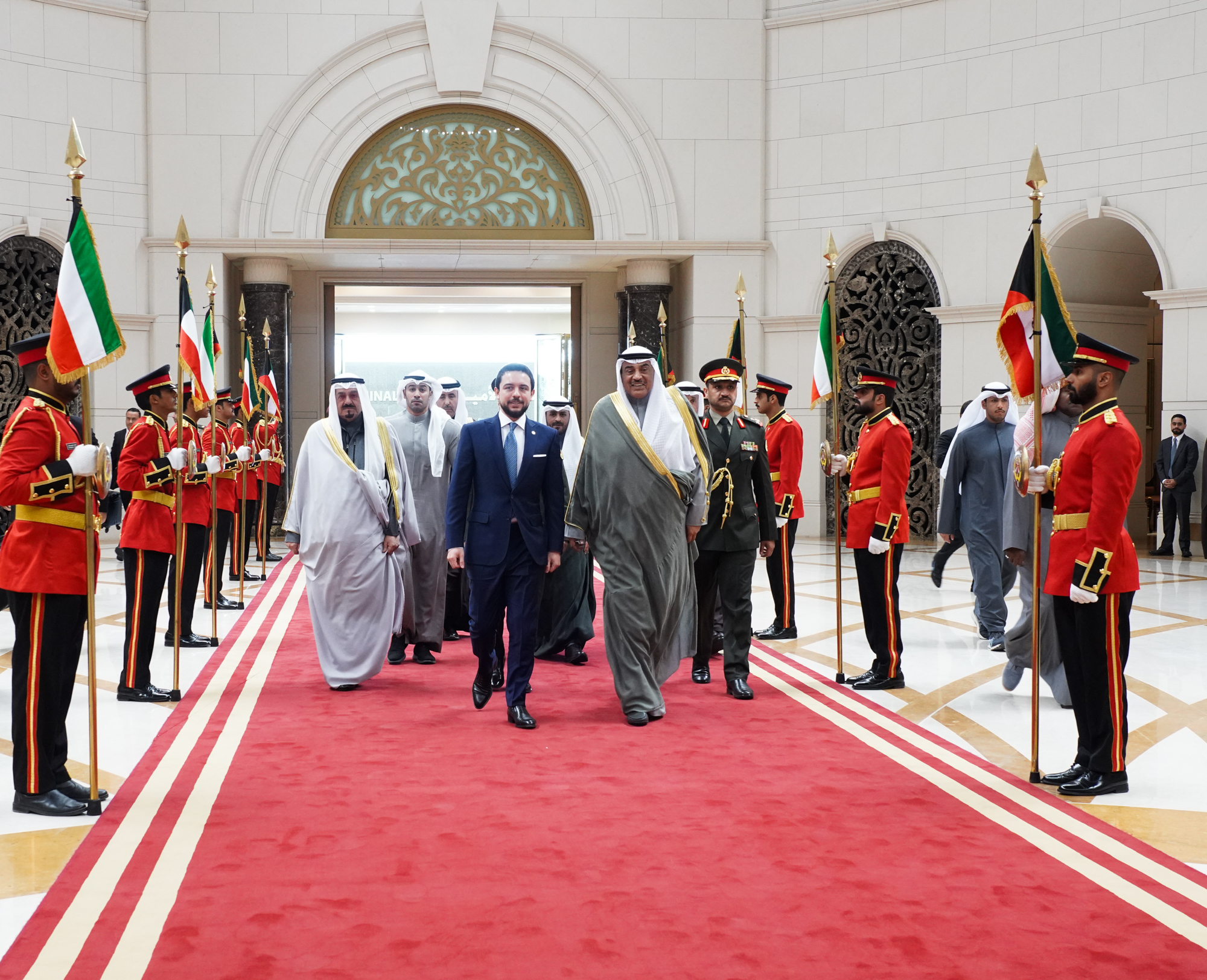 Prince Hussein bin Abdullah was bid farewell at the airport by His Highness the Crown Prince Sheikh Sabah Al-Khaled Al-Hamad Al-Sabah, His Highness the Prime Minister Sheikh Ahmad Al-Abdullah Al-Ahmad Al-Sabah, Chief of the National Guard Sheikh Mubarak Humoud Al-Jaber Al-Sabah, First Deputy Prime Minister, Minister of Defense and Minister of Interior Sheikh Fahad Yusuf Al-Sabah, and other officials.