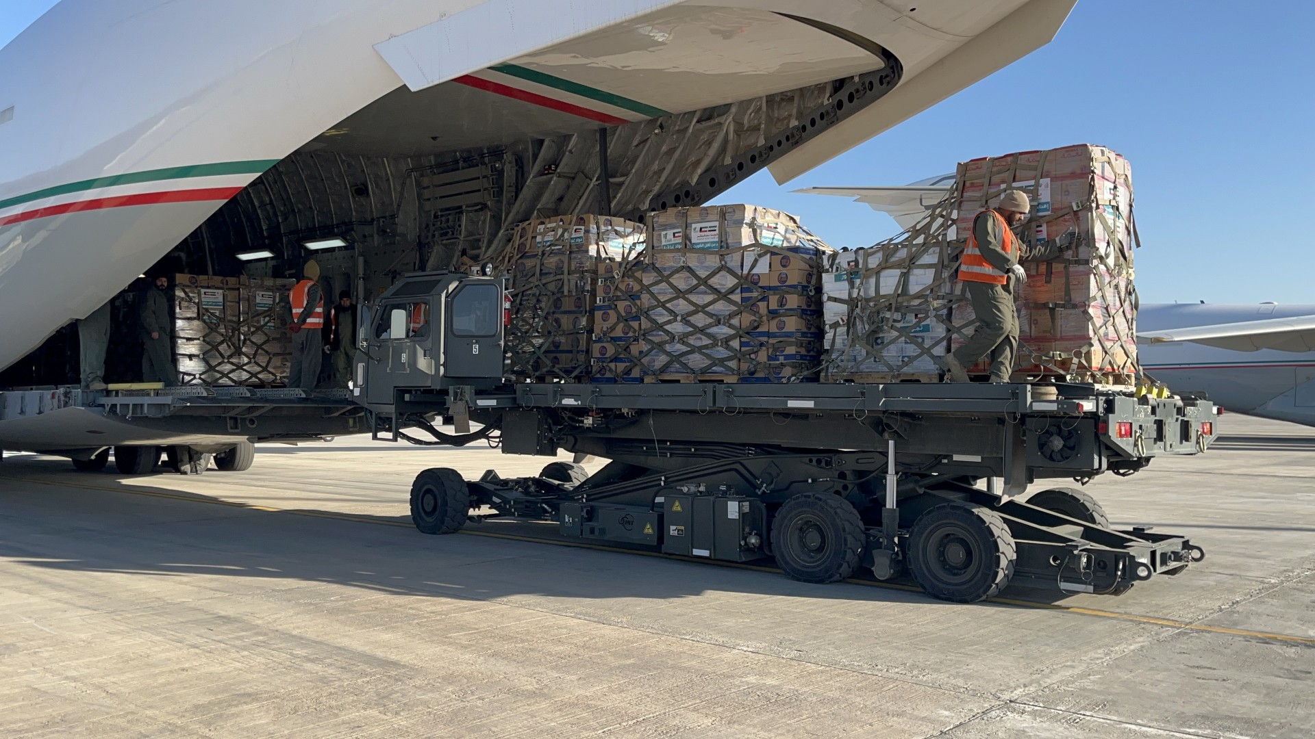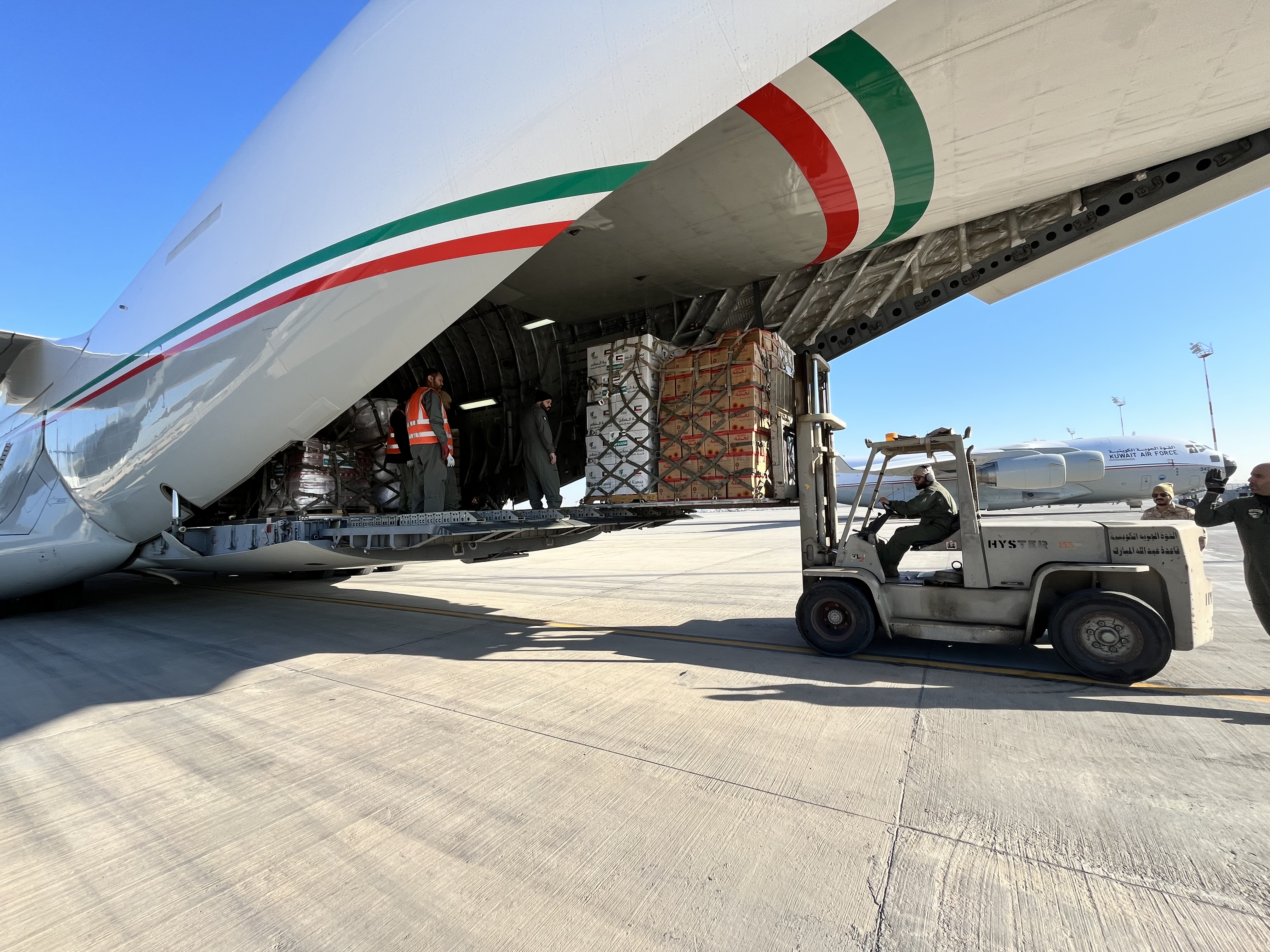 The latest relief planeload was organized by Al-Salam Association for Humanitarian and Charitable Works, with the participation of charity societies and in coordination with the Ministries of Social Affairs, Foreign Affairs and Defense.