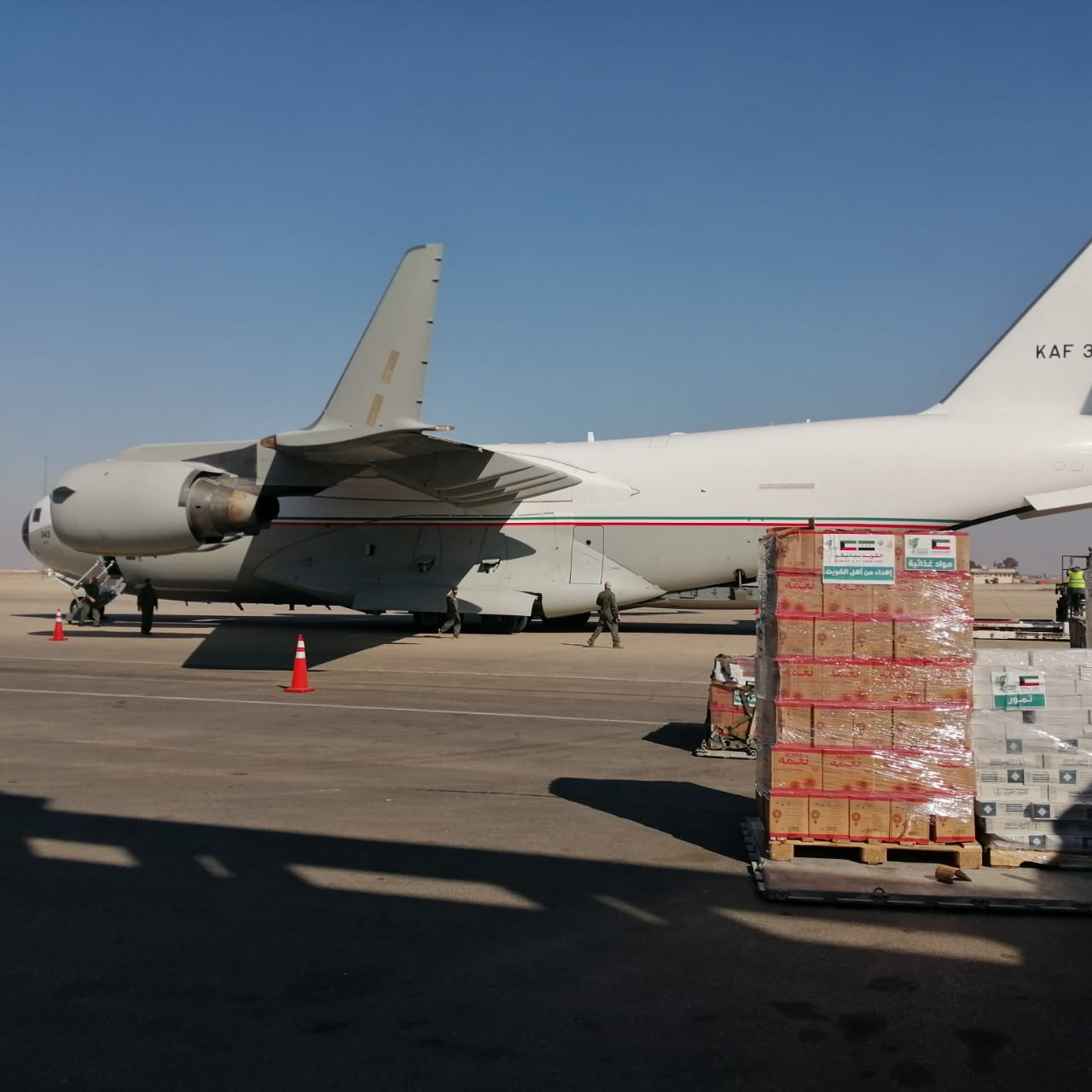 Kuwait's seventh aid aircraft to Syria arrived at Damascus International Airport carrying food and winter supplies