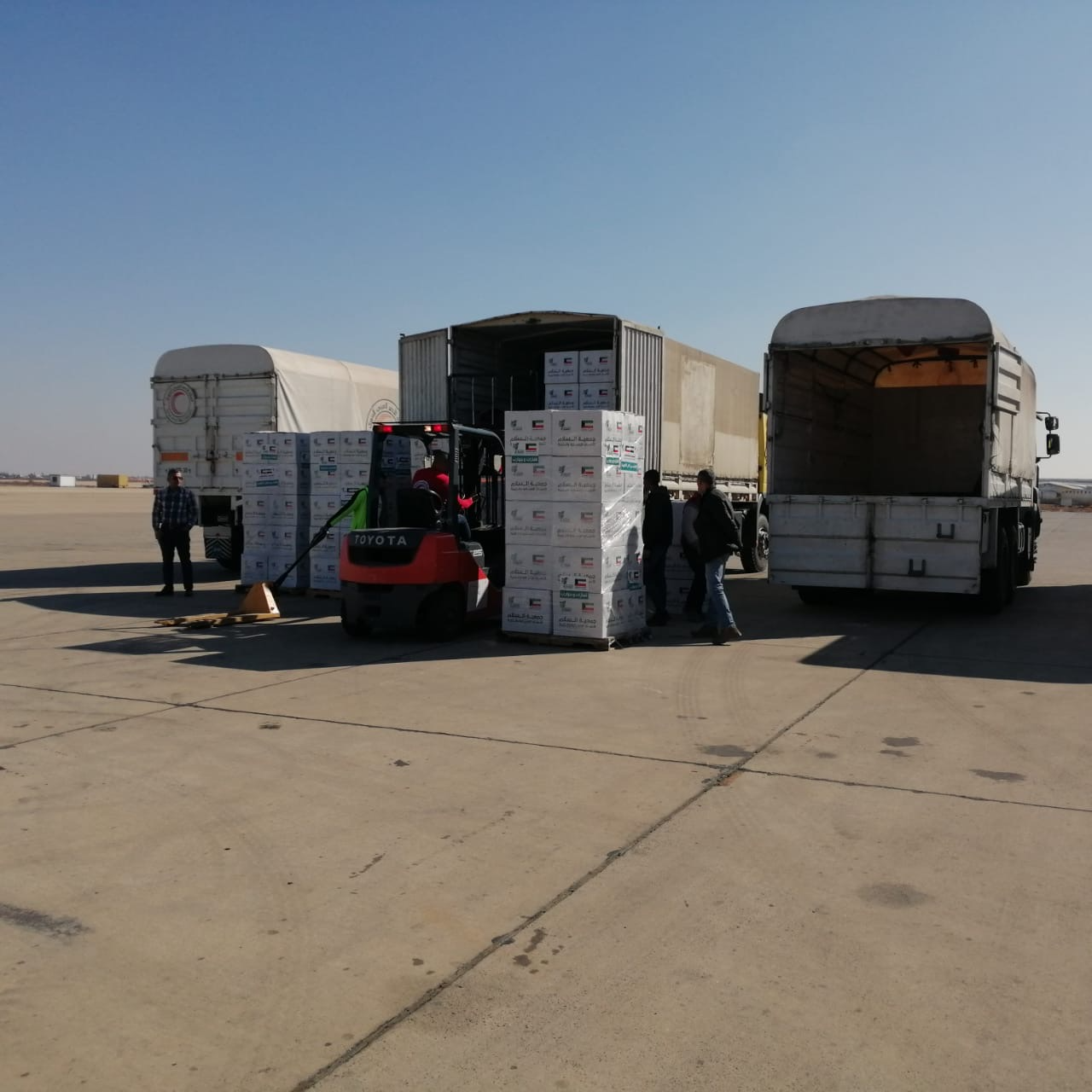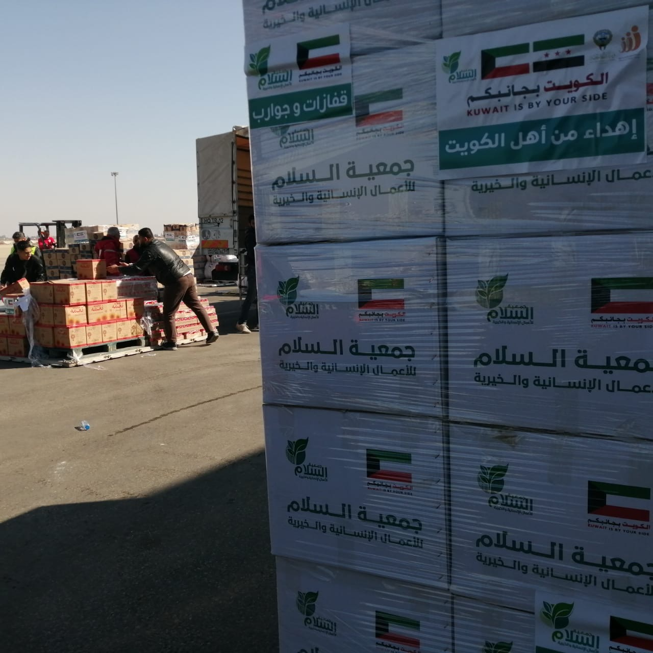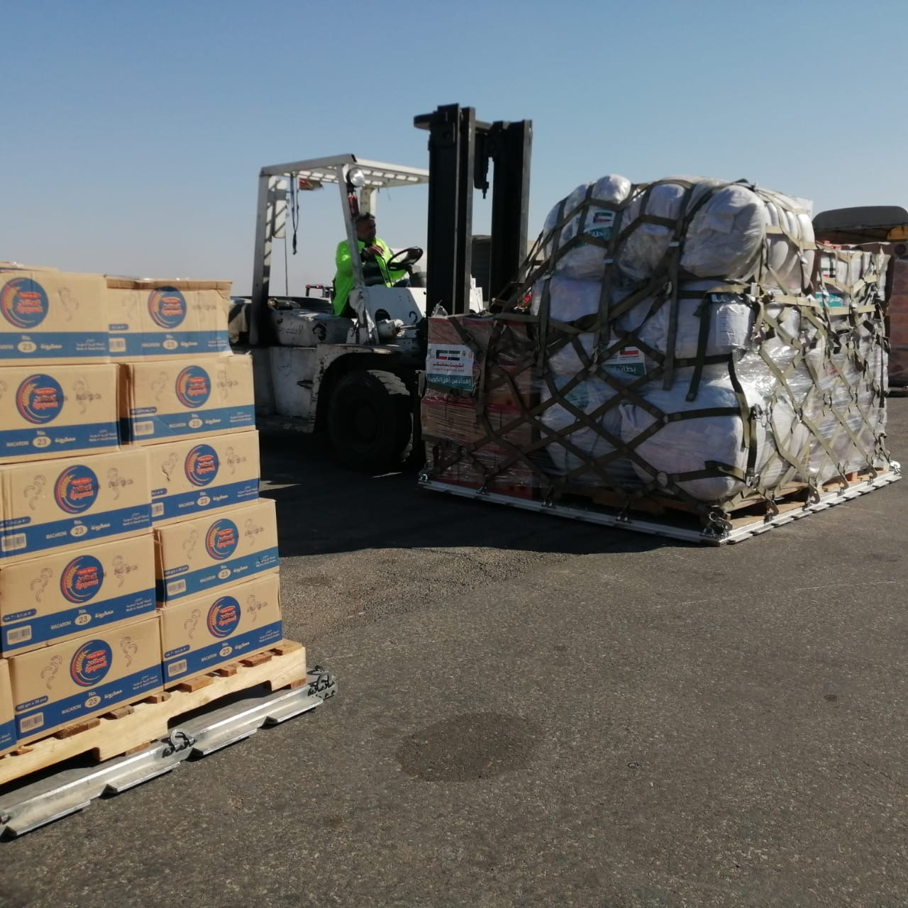 The relief planeload was organized by Al-Salam Association for Humanitarian and Charitable Works, with the participation of charity societies and in coordination with the Syrian Arab Red Crescent.