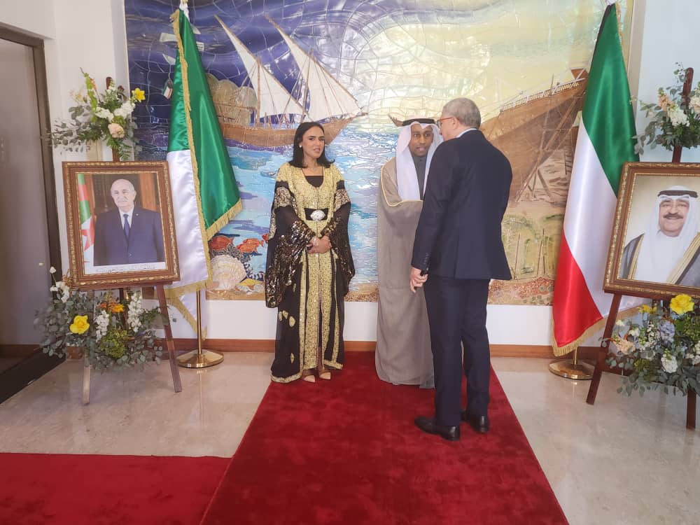 The Kuwaiti Embassy in Algeria hosted a reception at its headquarters, where Acting Charge d'Affaires Khaled Al-Yoha conveyed his congratulations to His Highness the Amir Sheikh Meshal Al-Ahmad Al-Jaber Al-Sabah, His Highness the Crown Prince Sheikh Sabah Khaled Al-Hamad Al-Sabah, and the people of Kuwait, and emphasized the strong relations between Kuwait and Algeria, highlighting ongoing preparations for the next joint committee meeting, which aims to enhance economic and trade cooperation.
