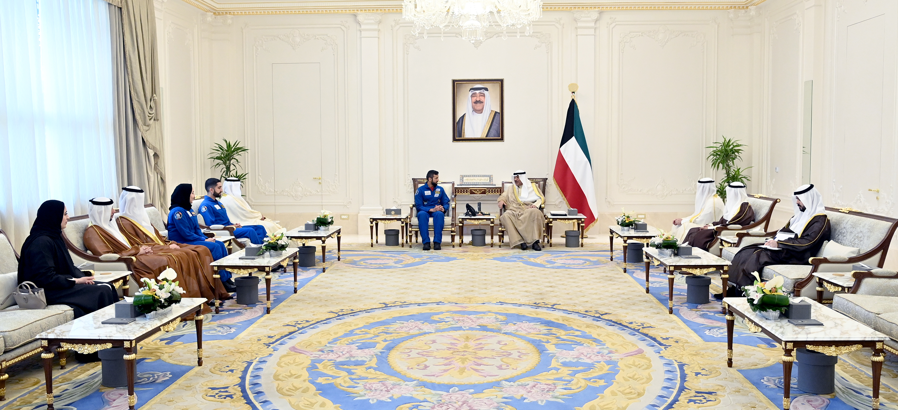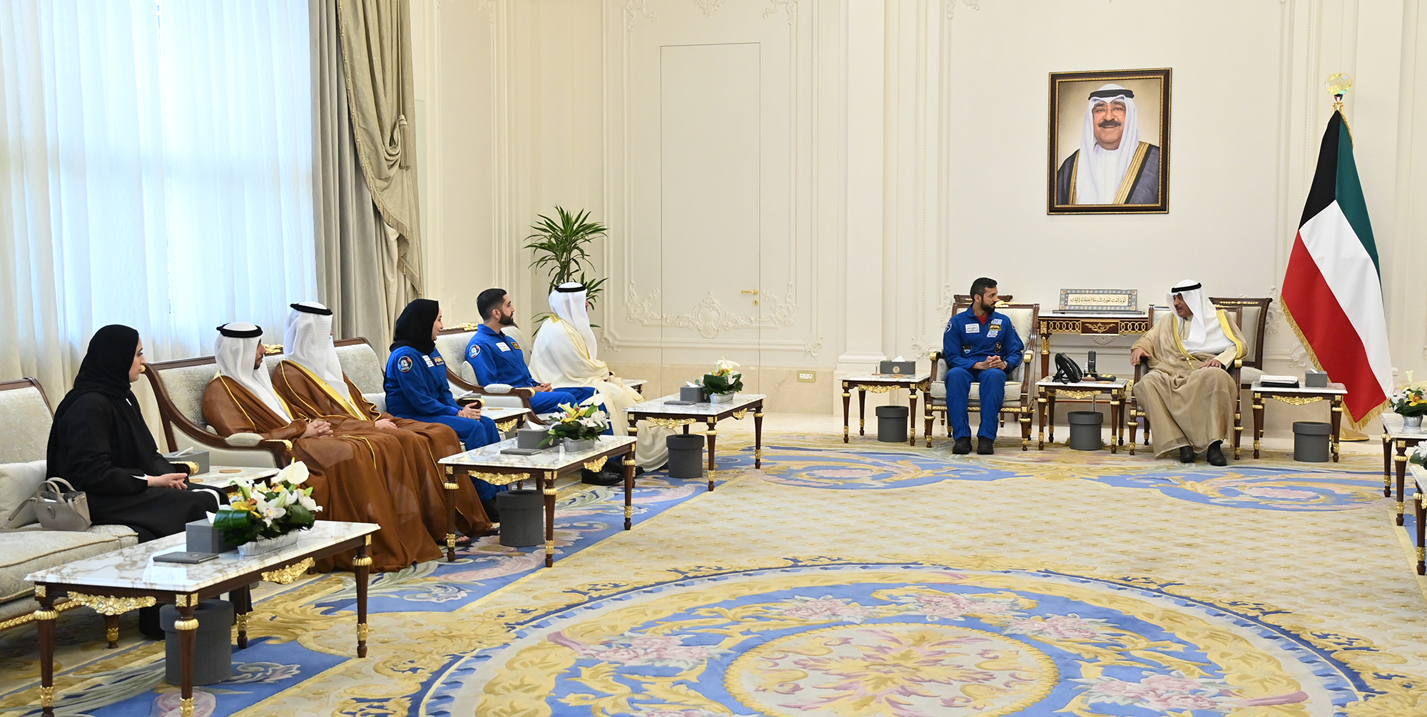 His Highness the Crown Prince Sheikh Sabah Khaled Al-Hamad Al-Sabah received UAE's State Minister for Youth Affairs Dr. Sultan Al-Neyadi, and astronauts Nora Al-Matrooshi and Mohammad Al-Mulla