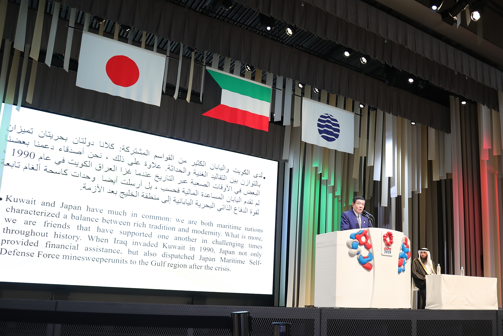 At an official ceremony following the parade, Japanese Minister in charge of the World Expo 2025 Yoshitaka Ito spoke highly of the Kuwait-Japan relations in a speech, saying, "Relations and exchanges between our countries date back to before the Independence of Kuwait in 1961, and Japan has received a stable supply of crude oil from Kuwait for many years."