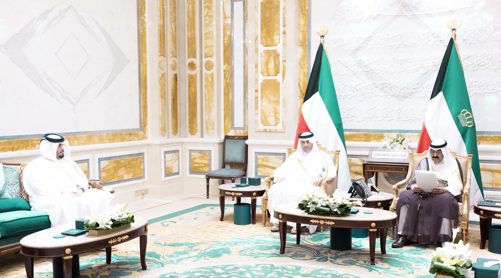 His Highness the Amir receives a written letter from Qatar's Amir delivered by Qatari Ambassador to Kuwait